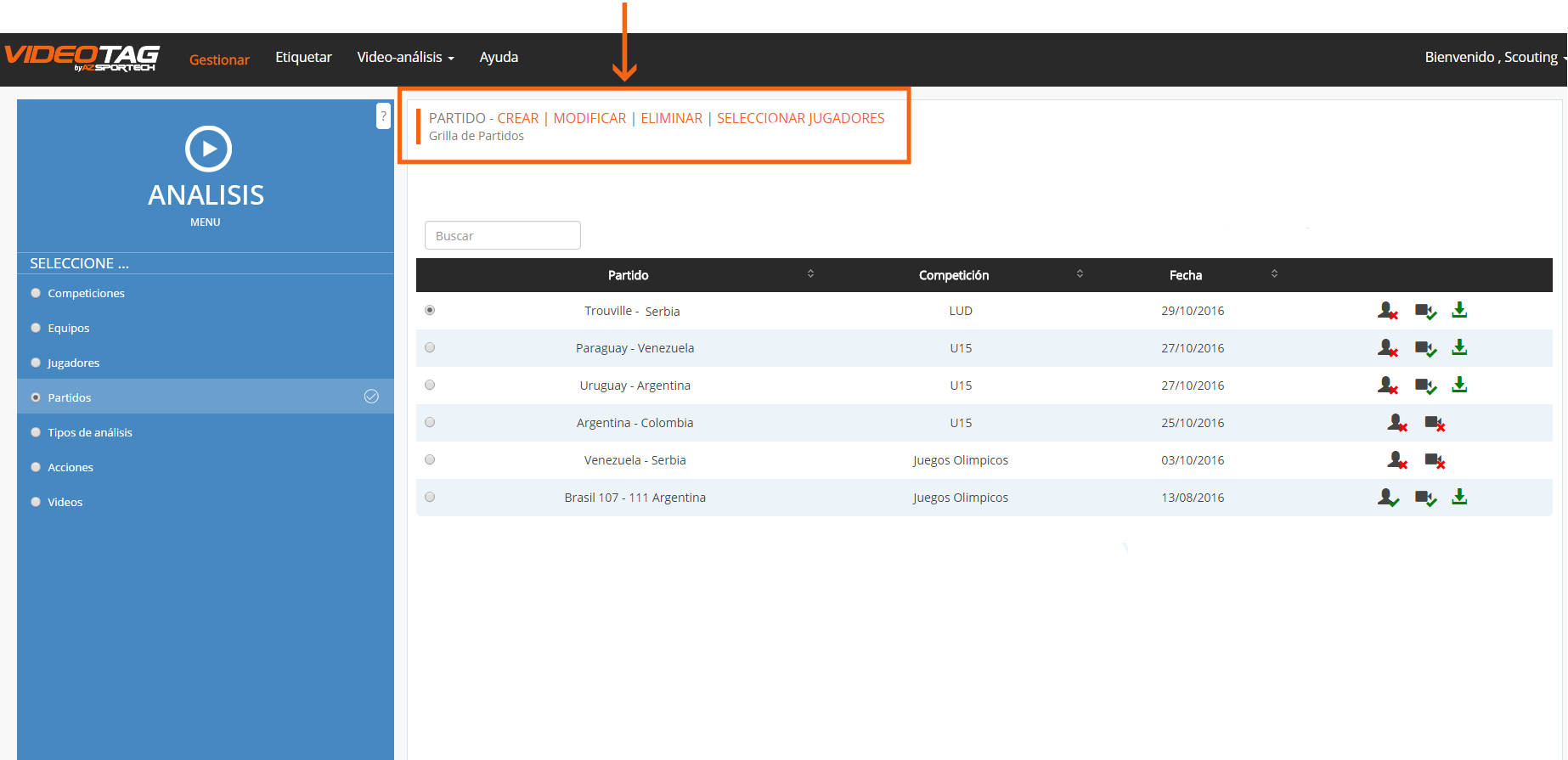 NOTA: No es obligatorio incluir el video al momento de crear el partido. Es necesario asignarlo al partido desde la opción «Modificar», una vez que el video está 100% subido a la plataforma desde la opción “Videos”.