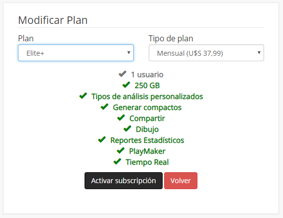 Al seleccionar Activar suscripción se despliega la opción para elegir el plan con el cual vas a trabajar en VideoTag.