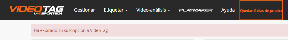 VideoTag, le irá notificando los días que le quedan de prueba para utilizar el producto de forma gratuita